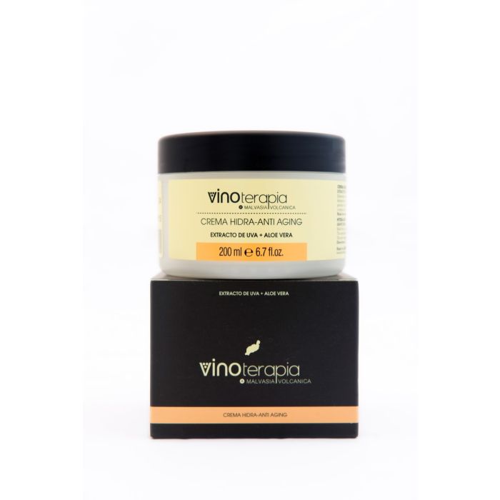 Elaborada a base de aceite de semillas de uva Malvasia, agua de vid y Jugo Puro de Aloe Vera, la Crema Hidra Anti-Aging aporta a la piel tanto de la cara como del cuerpo hidratación en profundidad.